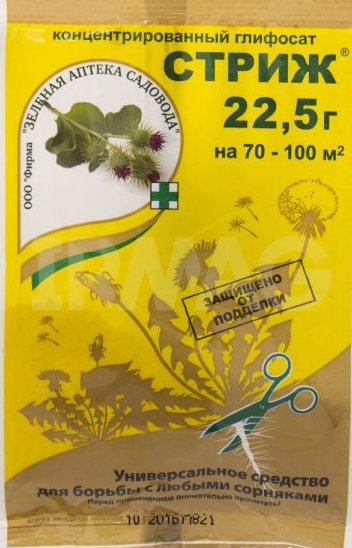 Стриж - универсальное средство для борьбы с любыми сорняками. Применяется для тотального уничтожения любых, самых трудноискореняемых сорняков: осот, пырей, сныть, крапива, одуванчик, амброзия и др. вдоль заборов, дорожек, построек, теплиц на участках, предназначенных под посев овощных, картофеля, бахчевых, цветочных культур, газонов при освоении участков.